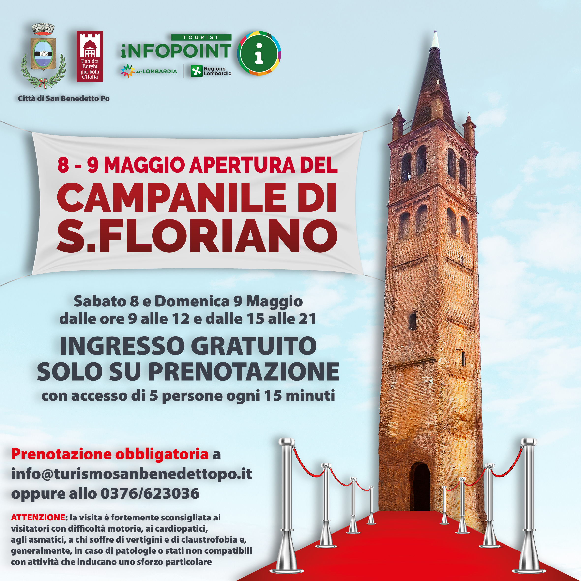 Prenotazione obbligatoria a mezzo mail info@turismosanbenedettopo.it